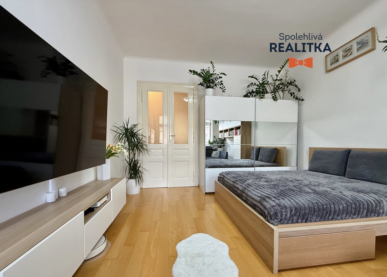Ve výhradním zastoupení vlastníka nabízíme prodej prostorného bytu 2+1 ve vyšším standardu v samém centru Brna s úžasným výhledem na Petrov a Špilberk. Bytová jednotka nabízí velkorysých 68,7 m2 bez započtení příslušenství jakožto lodžie o výměře 8 m2 a sklepní kóje o výměře 8,2 m2. Nemovitost prošla rozsáhlou rekonstrukcí, kdy došlo k realizaci nových štukových omítek, nové elektroinstalace v materiálu mědi, byla realizována pokládka dřevěné podlahy z masivu, došlo k obložení koupelny moderními keramickými obklady, konečně zařízení kuchyňskou linkou a vestavnými skříněmi a ostatním nábytkem na míru od místního truhláře. Byt se prodává jako částečně zařízený, kdy v kuchyni zůstává kuchyňská linka včetně vestavných spotřebičů jakožto myčky, trouby, varné desky a digestoře. V obývacím pokoji zůstává designová skříň u dveří a po domluvě s vlastníkem lze přikoupit zavěšené skříně na zdi a televizní skříňku bílé barvy. V ložnici zůstává manželská postel. Výhodou bytu je úžasný výhled na místní pamětihodnosti, nízké měsíční náklady do 5.000,- Kč pro 2-3 dospělé osoby (zemní plyn 1.800,- Kč, elektrická energie 1.500,- Kč, platba za úklid a fond oprav 1.000,- Kč, studená voda 600,- Kč), konečně výhodo bytu je pěší blízkost centra města a možnost si pronajmou parkovací místo ve vzdálenosti do 100 m od nemovitosti za příznivou částku 1.200,- Kč měsíčně. Uvedená cena zahrnuje odměnu realitní kanceláře, když plátcem provize za zprostředkování je vlastník nemovitosti. V uvedené ceně není zahrnutý správní poplatek na katastru nemovitostí ve výši 2.000,- Kč za vklad vlastnického práva. Pro domluvení prohlídky nás neváhejte kontaktovat prostřednictvím odpovědního formuláře. Už nyní se těšíme až Vám nemovitost představíme osobně. Na viděnou.