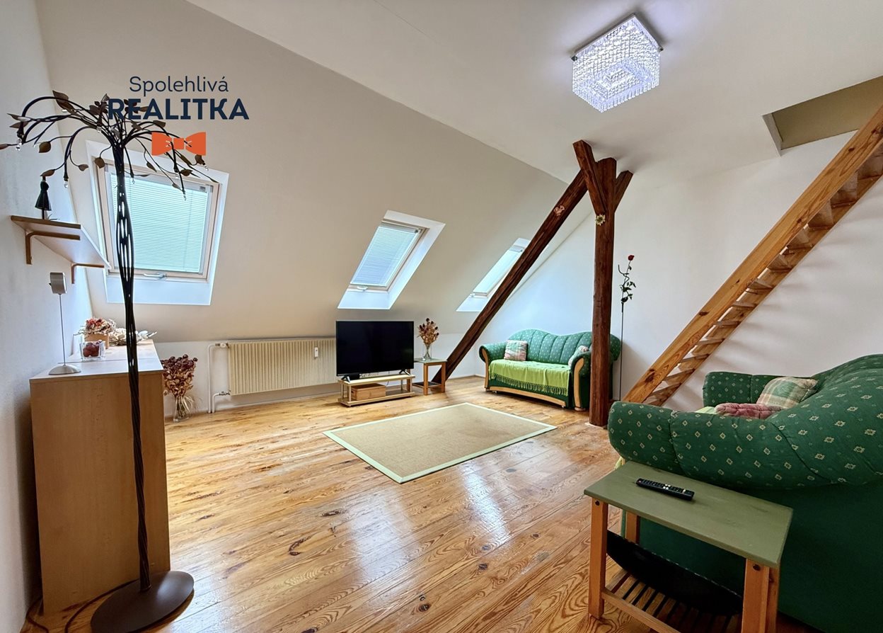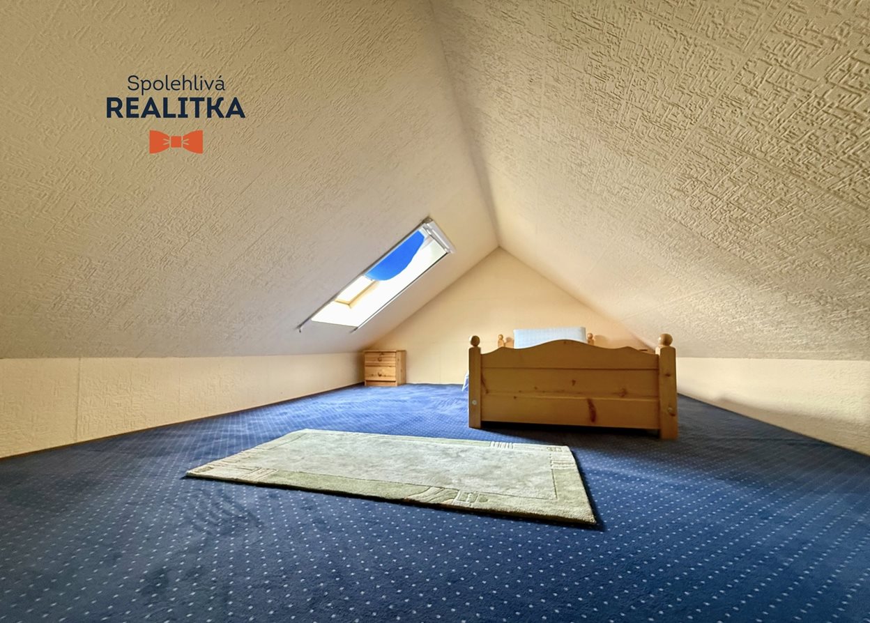 kuchyně 9 m2, obývací pokoj 25 m2, 1. ložnice 16 m2, 2. ložnice (s menší pochozí výškou) 12 m2 (není započítána v celkové ploše), koupelna s WC 8 m2, chodby v bytě 6 m2 + schodiště patřící k podkroví 5 m2.